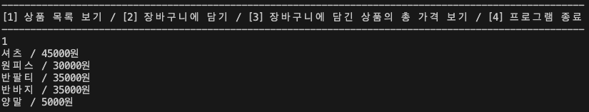만약 생성된 객체와 일치하지 않는 상품명이면 입력값이 잘못 되었다고 출력하도록 구현했다.