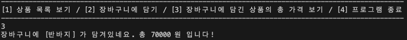 3. 장바구니에 있는 상품들의 총합 출력하기